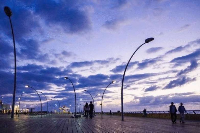 Граница между городом и пляжем — променад. По нему бегают, ездят на велосипеде, гуляют. Сидят на камнях-скамейках — читают, мечтают и смотрят на закат.
