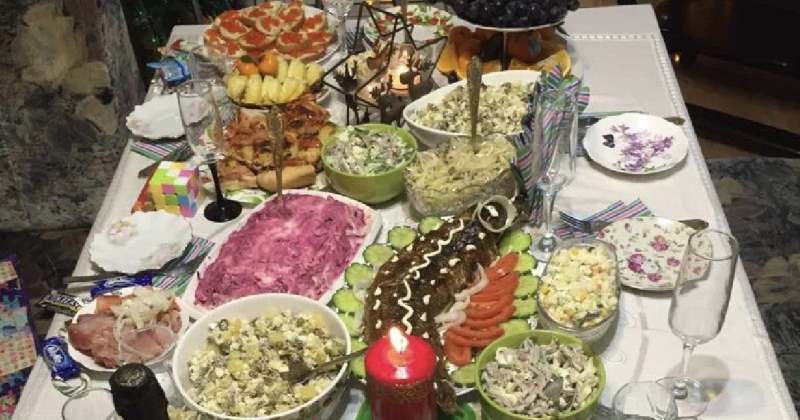 Многие дети не едят салаты, но были и другие блюда. Муж мой не выдержал и спросил у Снежаны почему она не ест. Ведь на Новогоднем столе столько вкусного. Ответ был таков — это не Новогодний стол, а стол залитый майонезом.