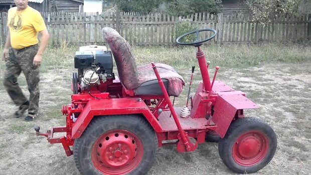 Его владелец рассказывает, что чтобы приобрести новый трактор, нужно заплатить примерно 6 тысяч долларов, а таких денег, работая на земле, сейчас не заработать. Так и пришла мысль изготовить простой компактный трактор самостоятельно.