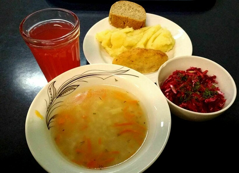 И трудящиеся, и студенты могли позволить себе обед в столовой. Сытный комплекс стоил рубль, а входили в него следующие блюда: суп или борщ, второе, овощной салат и компот.