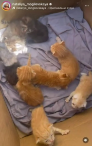 «Я снова стала мамой. Восемь из десяти. Кто-то под супермаркетом оставил маленьких котят, восемь штучек. Мы сейчас ухаживаем за ними и ищем для них хорошую семью, их новый домик. Котята совсем маленькие, поэтому сейчас надо вскармливать их из пипетки специальной едой » – поделилась Могилевская.