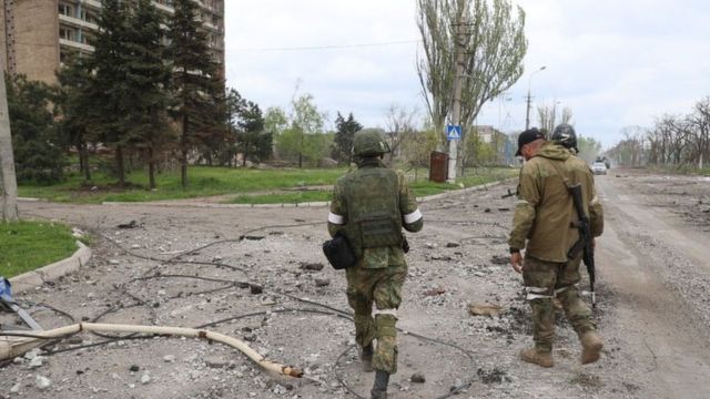 Вооруженные формирования самопровозглашенной ДНР на улицах Мариуполя