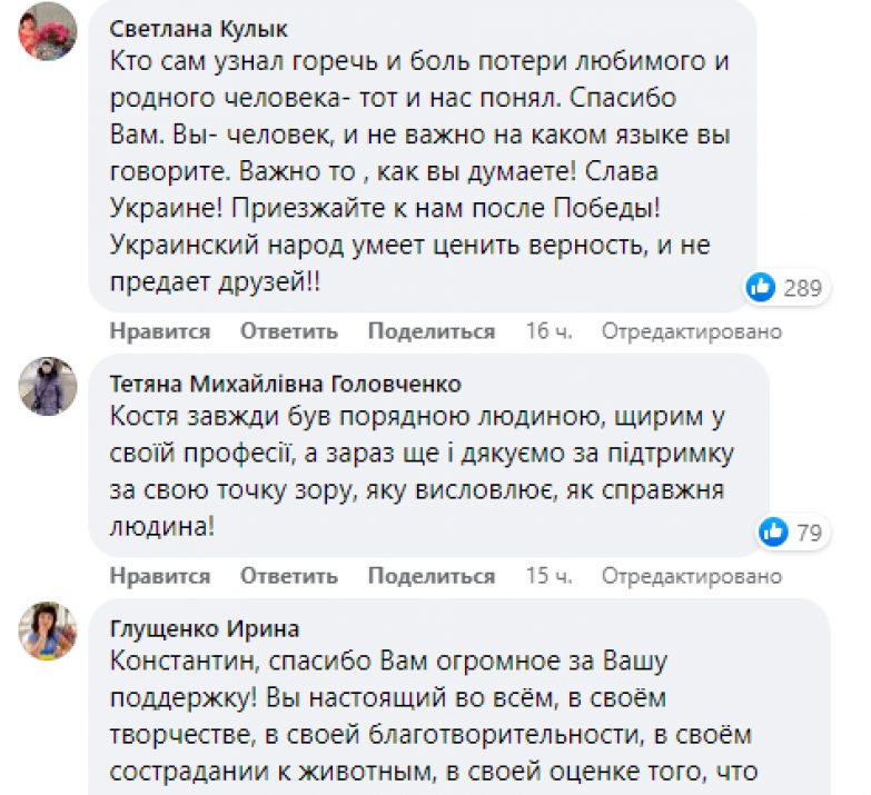 Актер рассказал, что после его заявлений, он столкнулся с осуждением и даже откровенной агрессией со стороны коллег и друзей. Константина удивило, что его проукраинская позиция вызвала такую волну негатива, поэтому он решил удалить свои страницы, чтобы не провоцировать новые конфликты.