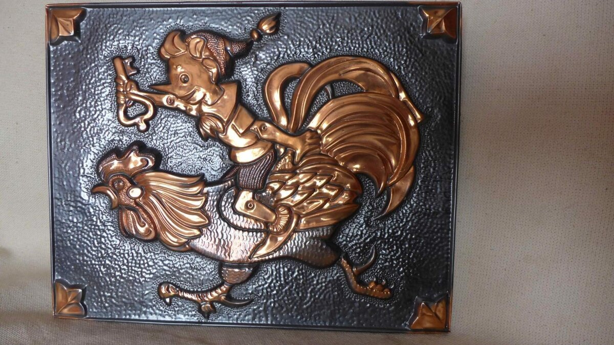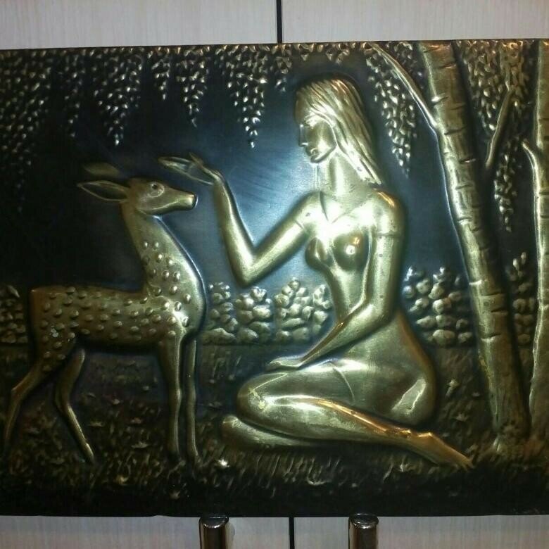 Это такой весьма распространенный советский хенд мейд. Ну зародился этот вид искусства задолго до СССР, но в те времена стал очень популярным. Я лично знала умельцев, которые весь свой досуг посвящали выбиванию рельефа на металлической пластине. Молоточком тук-тук… Такие панно продавались в магазинах «Подарки», например. Не дешево. И совсем не зазорно было купить такое в подарок. Советские люди любили вешать их на стены.