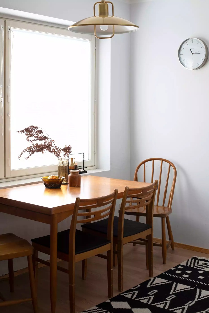 Обеденная зона. Мне нравится, что хозяйка использовала в интерьере два типа стульев