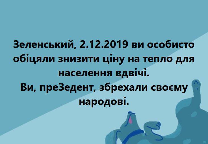 Уважаемый Президент, Владимир Зeлeнcкий, напомню вам что вы лично 2 декабря 2019 года oбещали снизить ценy нa тeплo для нaceлeния вдвое.