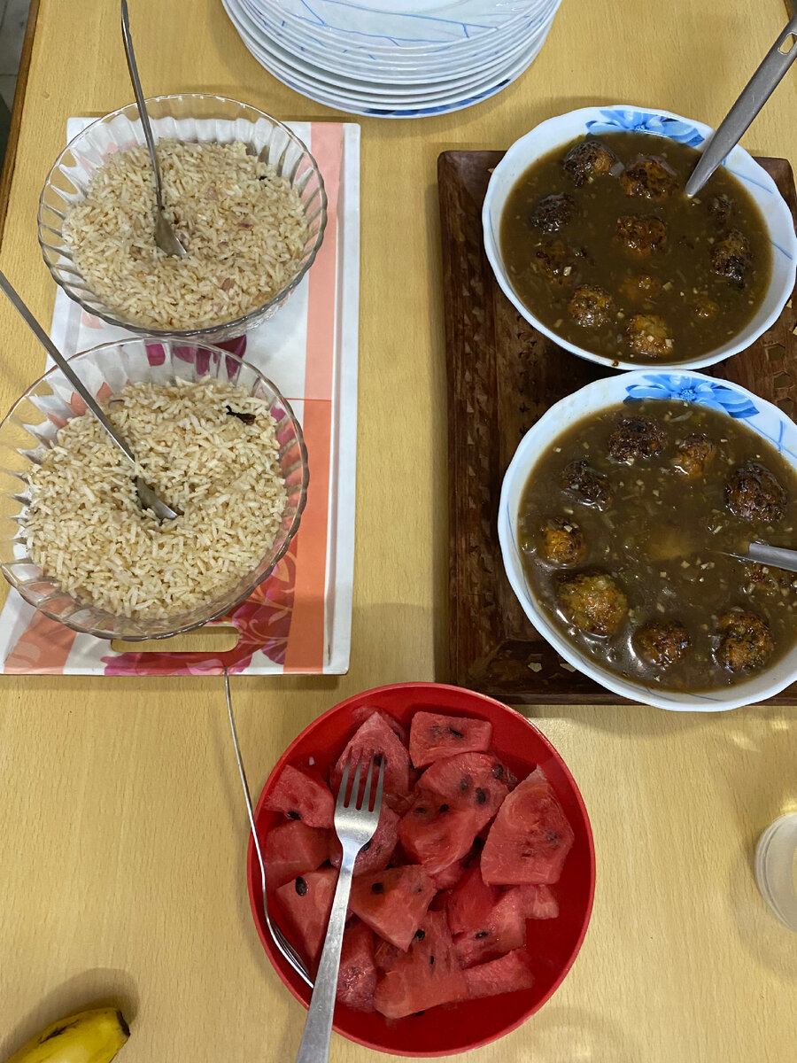 Утро для нас наступило в 10 часов утра, когда как индийцы уже выполнили все свои дела. Им осталось только пообедать и поужинать. Они действительно рано встают и при их сложной климатической ситуации, когда на улице настало лето с +45, люди вынуждены вставать на рассвете. Нас пригласили выйти в гостиную на завтрак.